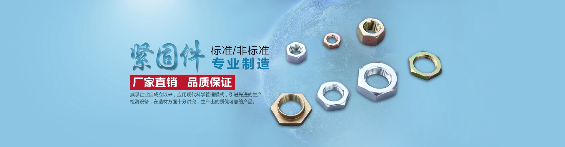 瑞安市威孚標(biāo)準(zhǔn)件有限公司企業(yè)創(chuàng)辦于1994年,是一家專業(yè)生產(chǎn)及加工標(biāo)準(zhǔn)件、高強度緊固件的廠家。主要的產(chǎn)品有防松螺母、鎖緊螺母、六角螺母、法蘭螺母、半圓鍵、尼龍防松螺母、自鎖螺母等。常見的其他附件有:螺絲、螺釘、墊圈、彈簧、墊片、連接件、彈墊、高強度螺栓。防松螺母的表面采用鍍鋅工藝,緊固功能強大,方便拆卸,固定好了就不會松動。我們的緊固件擁有高強度的連接方法,緊固的結(jié)構(gòu)合理。標(biāo)準(zhǔn)件,采用新型的工藝及不銹鋼的材質(zhì),標(biāo)準(zhǔn)的規(guī)格,類型很多,非常實用。我們的防松螺母、鎖緊螺母等產(chǎn)品支持定制,適用于:裝修、機械等生活及工作上、產(chǎn)品不僅質(zhì)量可靠,我們還提供了售前售后的服務(wù),為您解決相關(guān)緊固件產(chǎn)品問題。